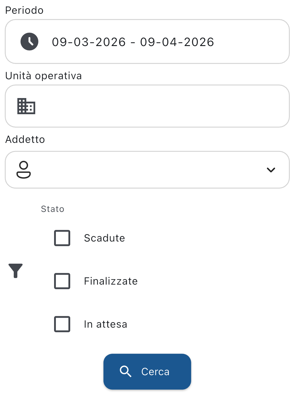 Dopo aver scelto il periodo, l'unità operativa, e aver impostato i filtri come desiderato, tocca il pulsante