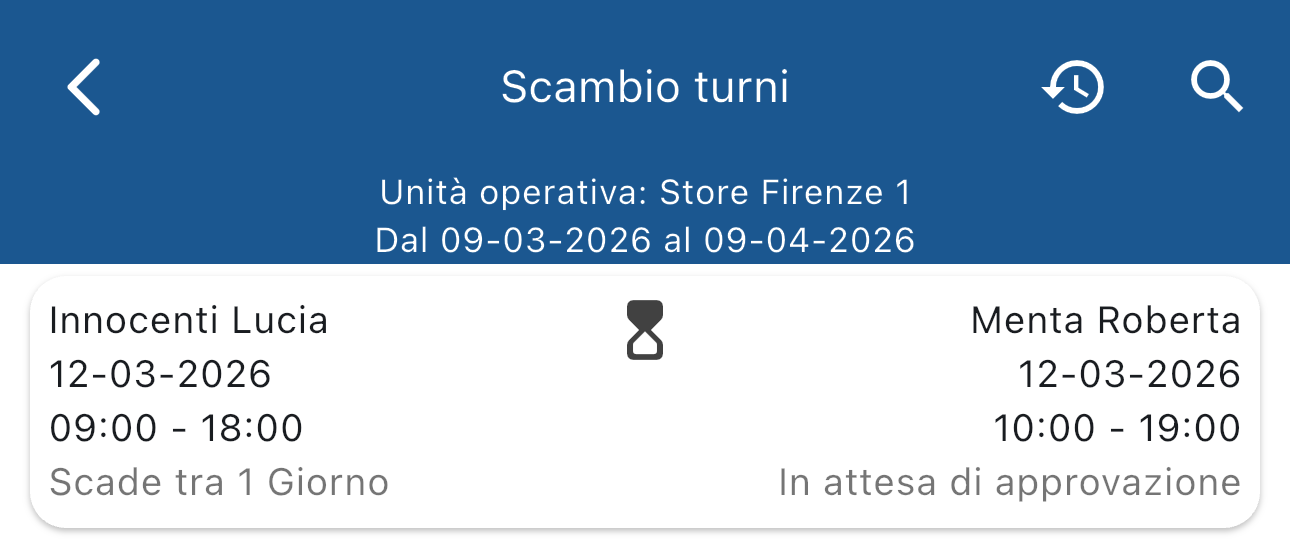 e, se ci sono delle richieste di scambio turni vedrai questa schermata: