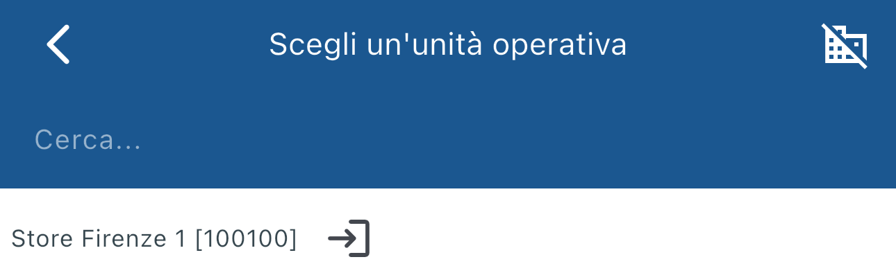 Con questa funzione puoi vedere i turni di tutte le unità operative a te visibili. Toccando Turni nel menu vedrai inizialmente una schermata per scegliere l'unità operativa di cui vedere i turni: